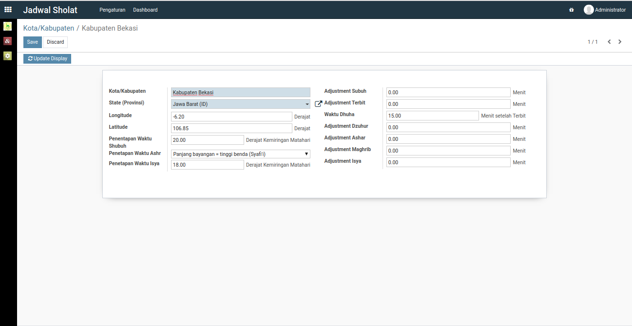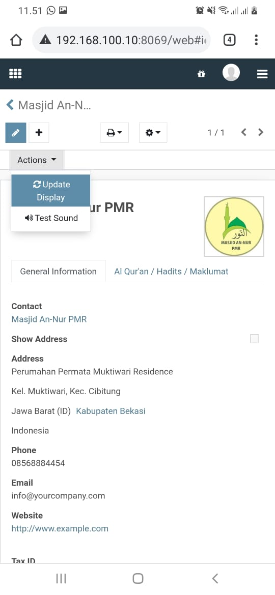 Pada beberapa waktu yang lalu, saya mencoba membuat aplikasi display jadwal sholat masjid menggunakan Odoo 14, walaupun belum sempurna dan masih sederhana tapi Alhamdulillah aplikasi ini sudah bisa digunakan dan sudah diimplementasikan di masjid tempat saya tinggal.
