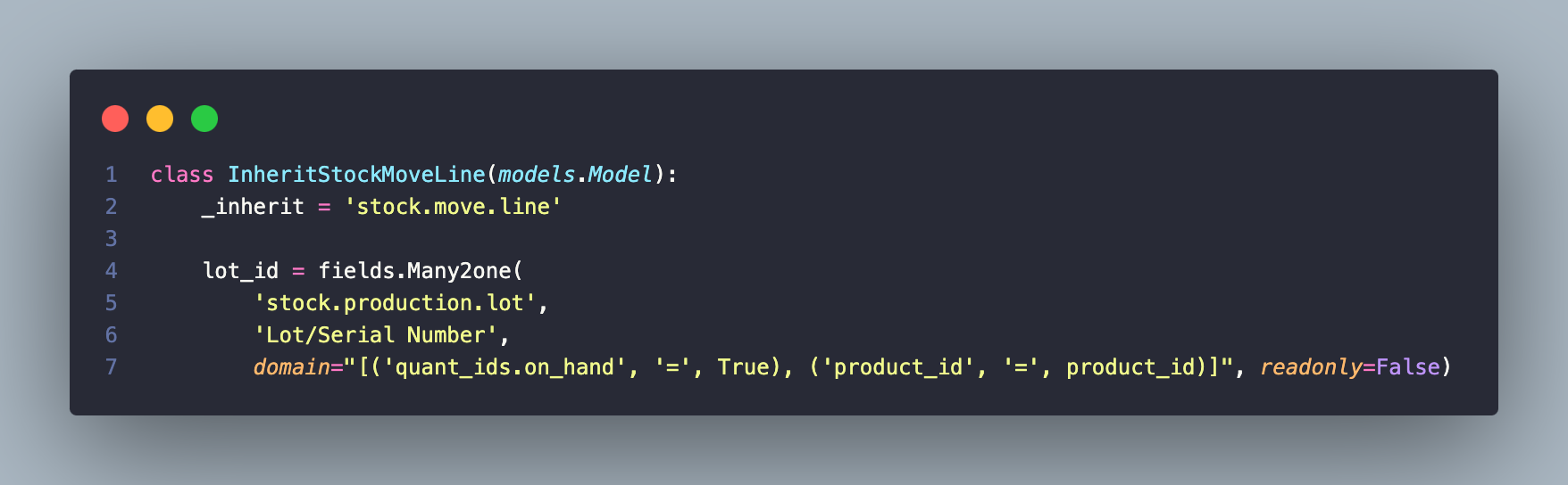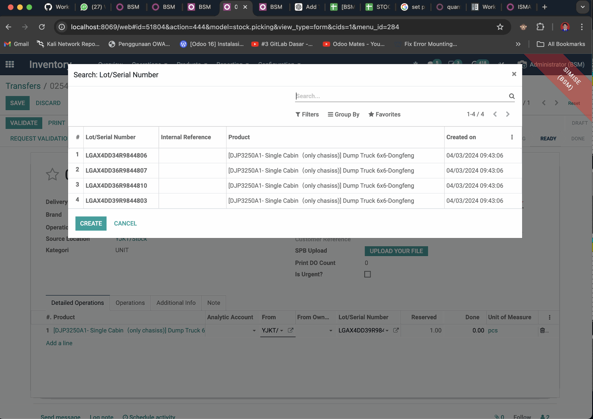 Disini saya mengcustom pada field Lot/Serial Number, agar memfilter dan menampilkan Lot/Serial Number yang memiliki Quantity saja.