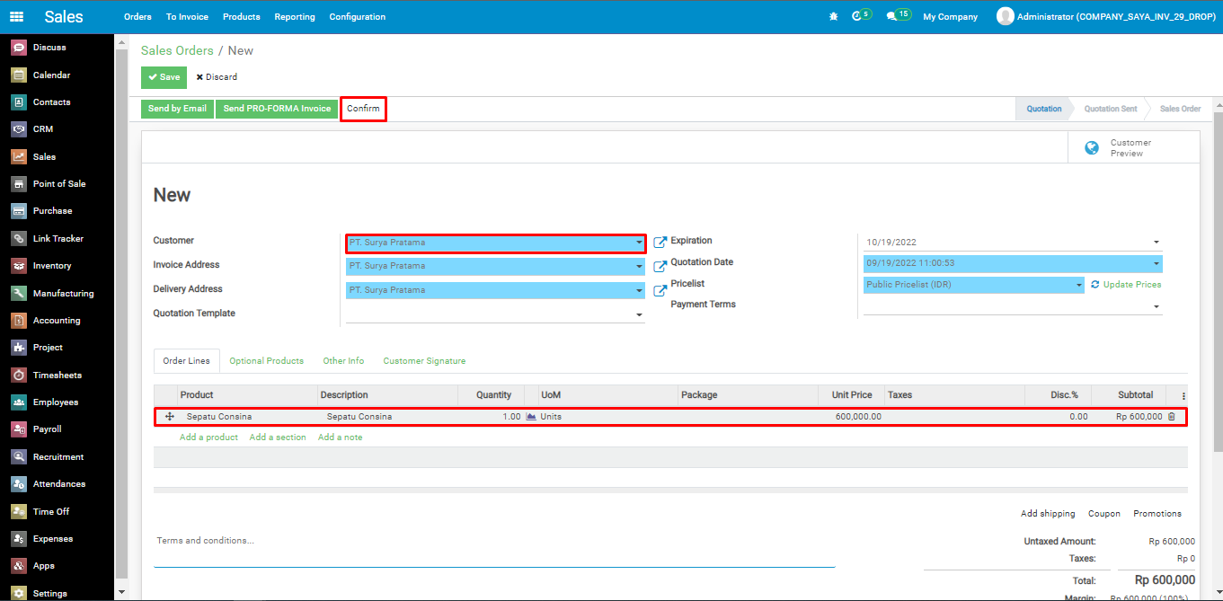 9. Kemudian isi Customer, Product dan klik button Confirm