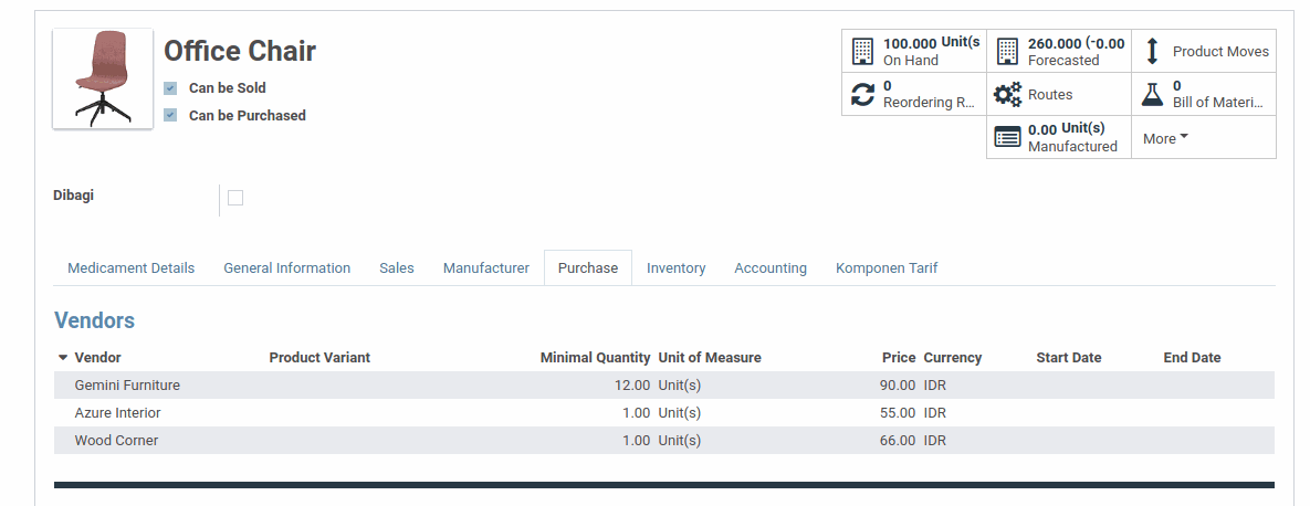 1. Pastikan data vendors di masing - masing product yang akan dimunculkan secara otomatis di purchase order line sudah terisi atau dilengkapi