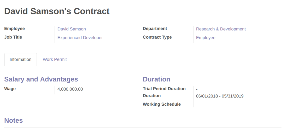 Dibawah ini contoh kontrak karyawan yg akan habis pada akhir bulan ini. ( pada field duration, terdapat tanggal mulai dan akhir kontraknya)